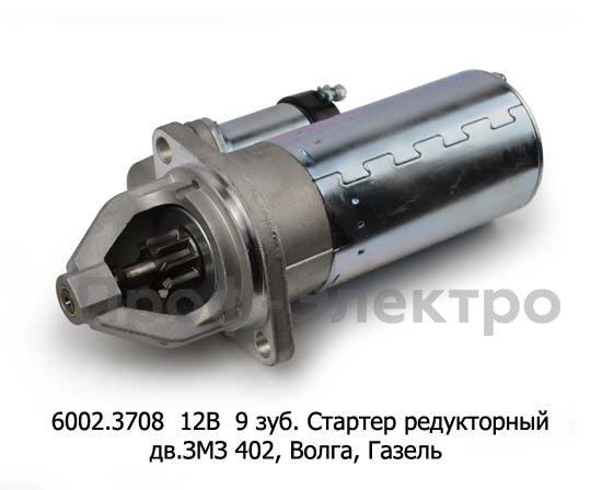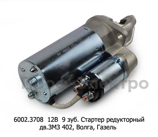 6002.3708 12В/2,0кВт 9 зуб. Стартер редукторный, дв.ЗМЗ 402, для Волга, Газель (АЕ)