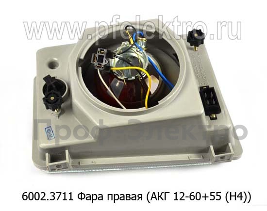 6002.3711 Правая б/л Фара для Волга газ-029, -3110, -3302, Москвич -2141, зил (АКГ 12-60+55 (Н4)-1шт., А12-4 (Т4W)-1шт.) (Освар)