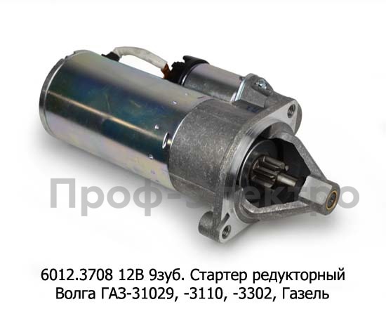 6012.3708 12В/2,0кВт 9зуб. Стартер редукторный для Волга газ-31029, -3110, -3302, Газель дв.ЗМЗ-406. 409 (ЗиТ)