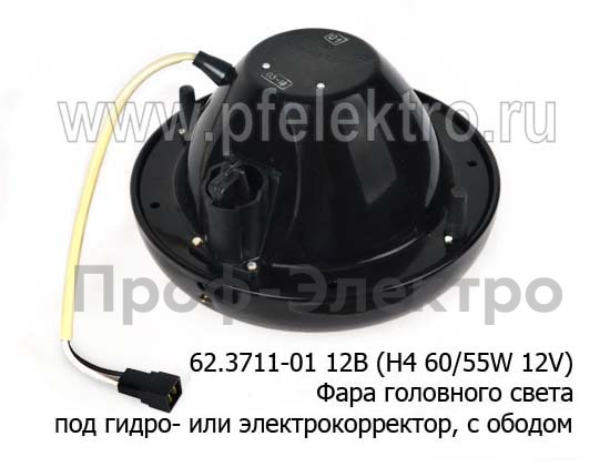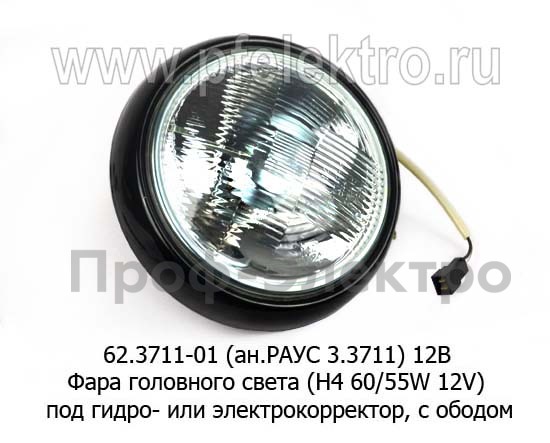 62.3711-01 (ан.РАУС 3.3711) 12В Фара головного света (H4 60/55W 12V) под гидро- или электрокорректор, с ободом для уаз, газ, паз (Освар)
