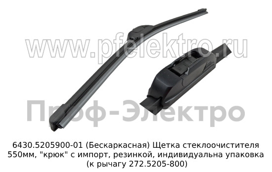 6430.5205900-01 (Бескаркасная) Щетка стеклоочистителя 550мм, "крюк" с импорт, резинкой, индивидуальна упаковка (к рычагу 272.5205-800)