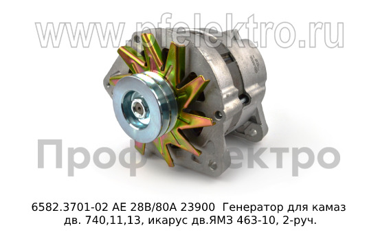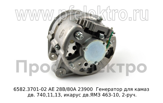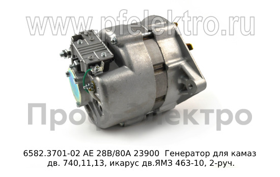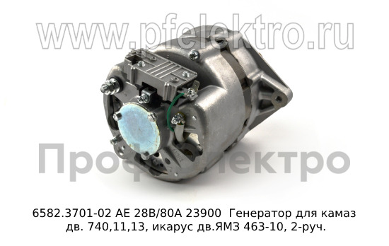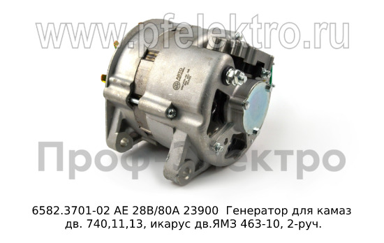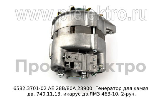 6582.3701-02 АЕ 28В/80А Генератор для камаз дв. 740,11,13, икарус дв.ЯМЗ 463-10, 2-руч. (АЕ)