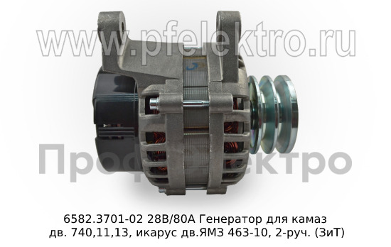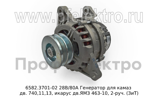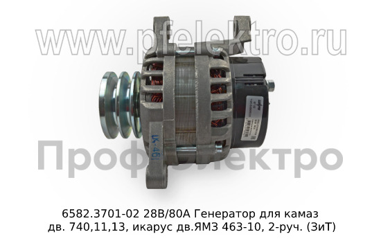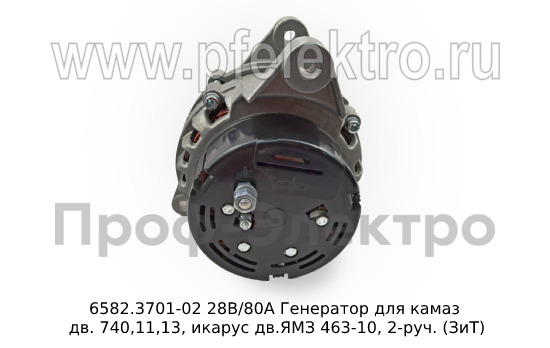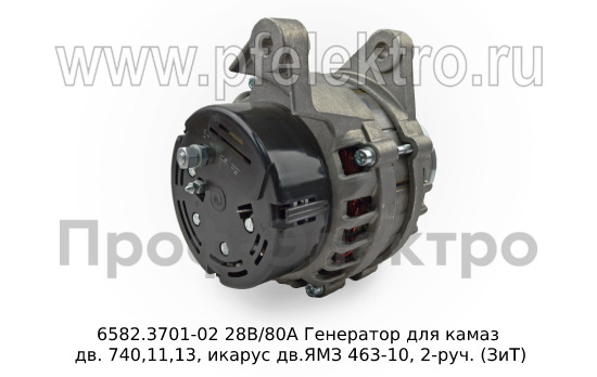 6582.3701-02 М 28В/80А Генератор для камаз дв. 740,11,13, икарус дв.ЯМЗ 463-10, 2-руч. (ЗиТ)