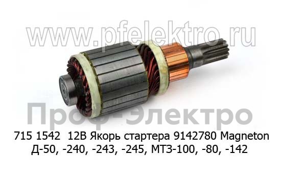 715 1542 12В Якорь стартера 9142780 Magneton, Д-50, -240, -243, -245, МТЗ-100, -80, -142, зил-Бычок