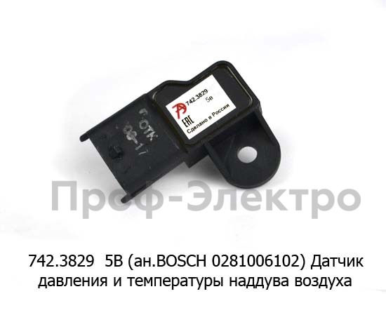 742.3829 5В (ан.BOSCH 0281006102, ЯМЗ 5340.1130548) Датчик давления и температуры наддува воздуха, ЯМЗ, камаз, маз, Валдай, ГАЗон Next (АвтоТрейд)