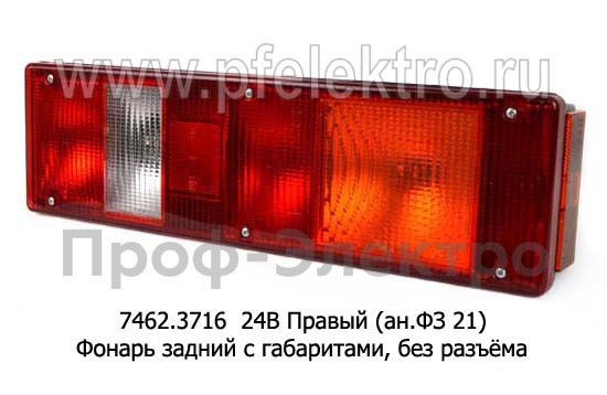 7462.3716 24В Правый (ан.ФЗ 21) Фонарь задний с габаритами, без разъёма, камаз, маз, урал, зил (Руденск)