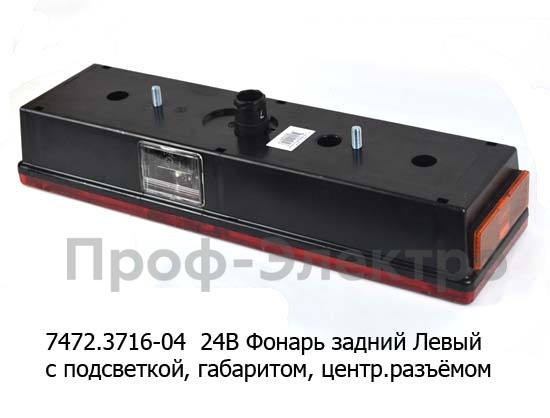 7472.3716-04 24В Левый Фонарь задний с габаритами, с подсветкой, центральный разъем SCHLEMMER, камаз, маз, урал, зил (Руденск)