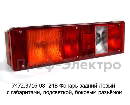 78.80-08 (ан.7472.3716-08) 24В Левый Фонарь задний с габаритами, с подсветкой, с боковым разъёмом SCHLEMMER, камаз, маз, урал, зил (Европлюс)