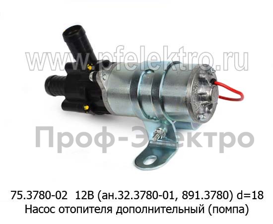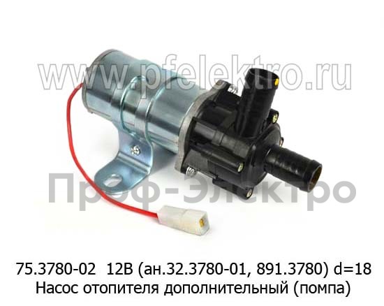 75.3780-02 12В (ан.32.3780-01, 891.3780) Насос отопителя дополнительный (помпа) d=18 для газ, Газель, уаз, все т/с (АЕ)