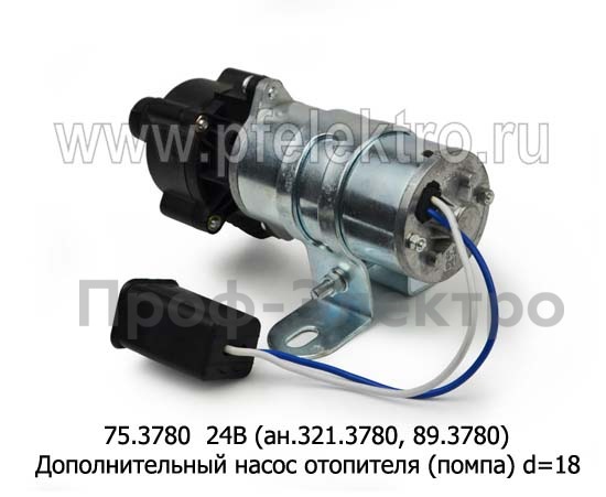 75.3780 24В (ан.321.3780, 89.3780) Насос отопителя дополнительный (помпа) d=18, камаз, маз, ПЖД, все т/с (АЕ)