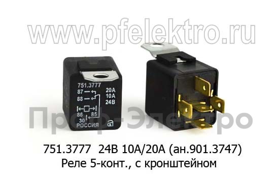 751.3777 24В 20А/10А (ан.901.3747) Реле 5-конт., с кронштейном, для камаз, маз, белаз, все т/с 24В степень защиты IP44 (АВАР)