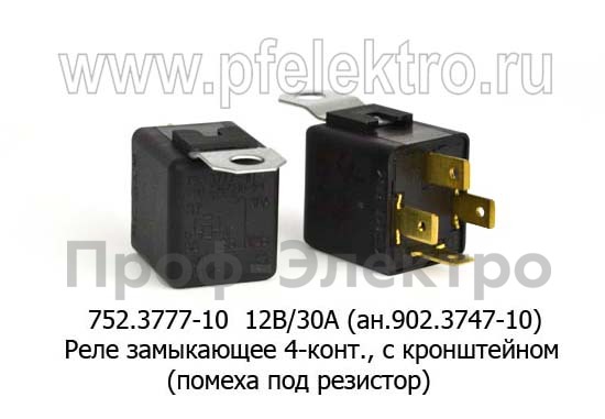 752.3777-10 12В/30А (ан.902.3747-10) Реле замыкающее 4-конт., с кроншт (помеха под резистор) для ваз, газ, Шевроле-Нива, все т/с (АВАР)
