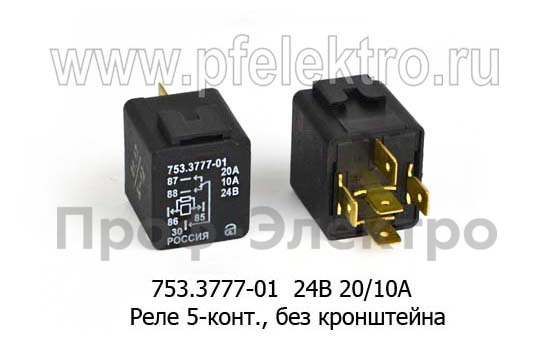 753.3777-01/04 24В 20/10А Реле 5-конт., универсальные (кронштейн отдельно), для камаз, маз, все т/с (АВАР)