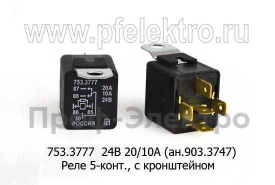 753.3777 24В 20/10А (ан.903.3747, 1102.3747010) Реле 5-конт., с кронштейном, для камаз, маз, все т/с (АВАР)