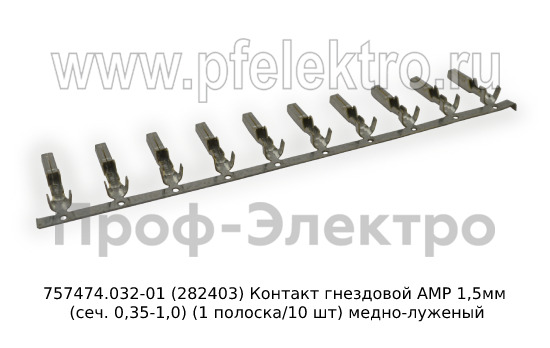 757474.032-01 (282403) Контакт гнездовой АМР 1,5мм (сеч. 0,35-1,0) (1 полоска/10 шт) медно-луженый, все т/с