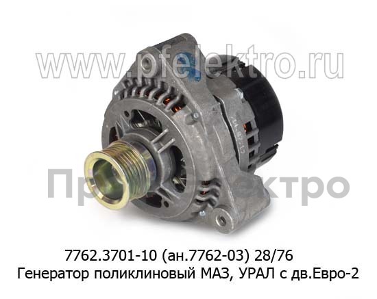 7762.3701-10 28В/76А (ан.7762-03) Генератор поликлиновый маз, урал с дв.Евро-2, -3 (ЗиТ)