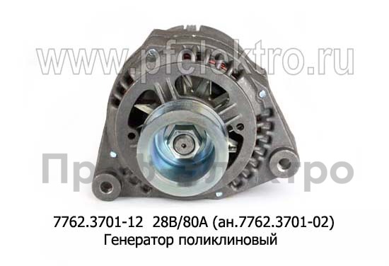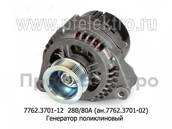 7762.3701-12 28В/80А (ан.7762.3701-02) Генератор поликлиновый для камаз, лиаз с дв.-740 (Евро-2,-3) (ЗиТ)