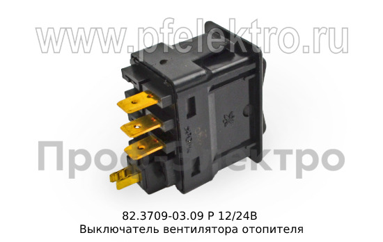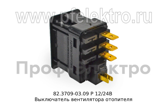 82.3709-03.09 Р 12/24В Выключатель вентилятора отопителя для Волга-3110, паз (3п) (Радиодеталь)