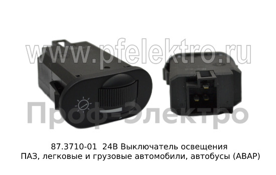 87.3710-01 24В Выключатель освещения ПАЗ, легковые и грузовые автомобили, автобусы (АВАР)