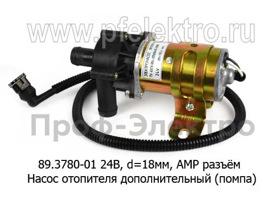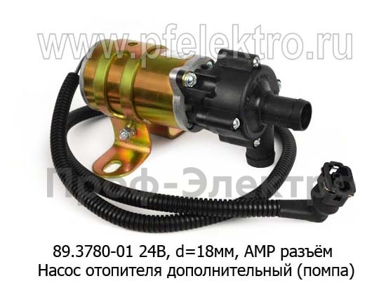 89.3780-01 24В (ан.1542.3730-10) Насос отопителя дополнительный d=18 мм (помпа) АМР разъём, для камаз, маз, ПЖД, все т/с 24В (КЭМЗ)