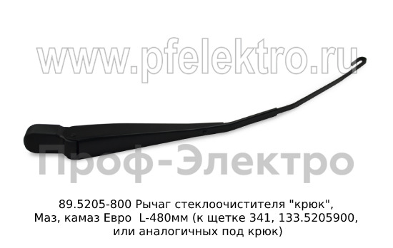 89.5205-800 Рычаг стеклоочистителя "крюк", Маз, камаз Евро L-480мм (к щетке 341, 133.5205900, или аналогичных под крюк) (АП)
