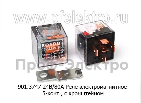 901.3747 24В/80А Реле электромагнитное 5-конт., с кронштейном, для камаз, маз, белаз, все т/с