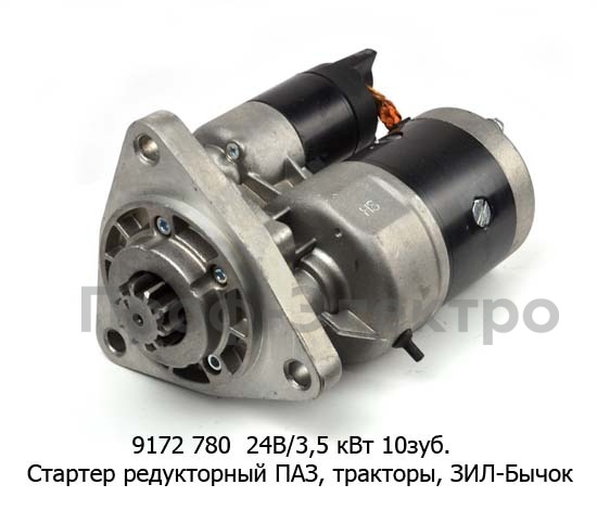 9172 780 (IMS201035) 24В/3,5 кВт 10зуб. Стартер редукторный паз, МТЗ-100, -80, -142, Д-50, -240, -243, -245, зил-Бычок (Iskramotor)