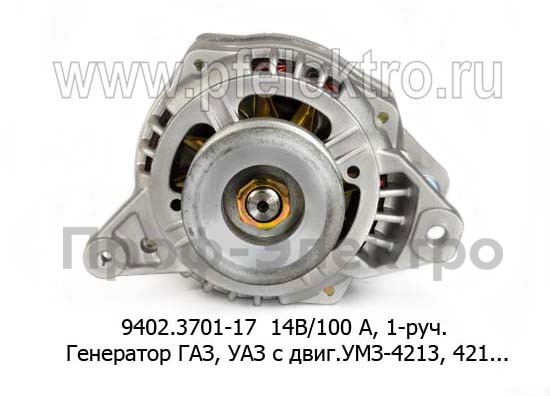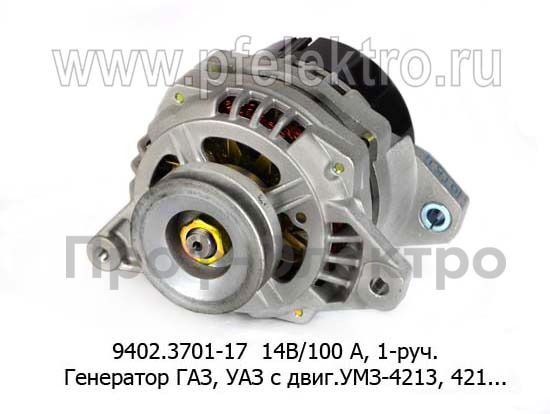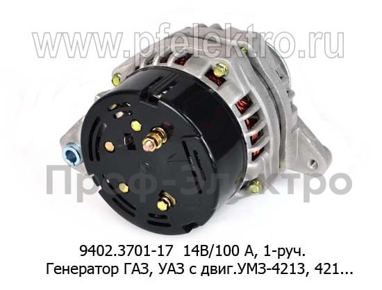 9402.3701-17 Р 14В/100 А Генератор для газ, уаз с дв.УМЗ-4213, 421, 4215, 4216, 4217 и их модиф., 1-руч. (ПРАМО-АТЭ)