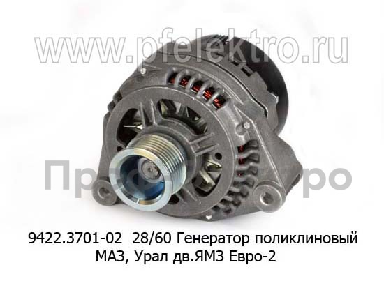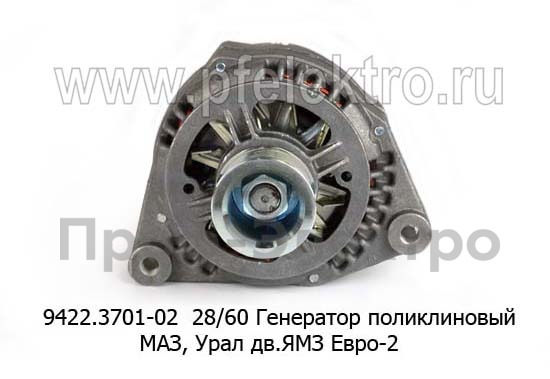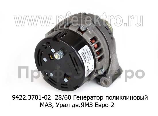 9422.3701-02 28В/60А Генератор поликлиновый маз, урал с дв.ЯМЗ Евро-2 (ЗИТ)