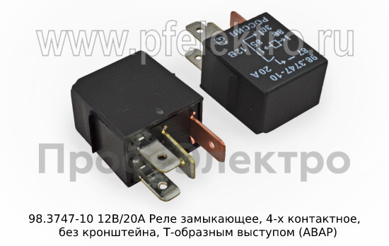98.3747-10 12В/20А Реле замыкающее, 4-х контактное, без кронштейна, Т-образным выступом (АВАР)