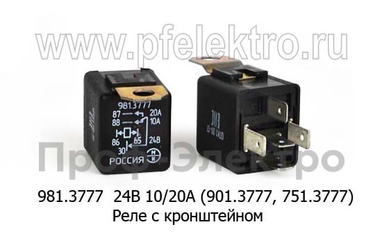 981.3777 24В 10/20А (ан.901.3777, 751.3777) Реле с кронштейном для камаз, маз, белаз, все т/с (ЭМИ)