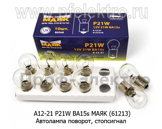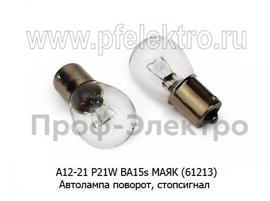 А12-21 BA15s МАЯК (61213) Автолампа P21W BA15s, поворот, стопсигнал, все т/с 12В (МАЯК)