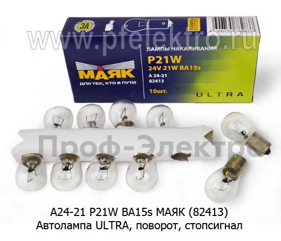 А24-21 BA15s МАЯК (62413) Автолампа ULTRA P21W BA15s, поворот, стопсигнал, все т/с 24В (МАЯК)