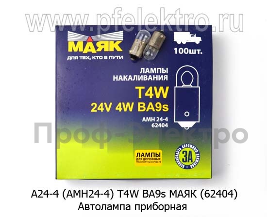 Артикул: А24-4 (АМН24-4) BA9s МАЯК (62404)