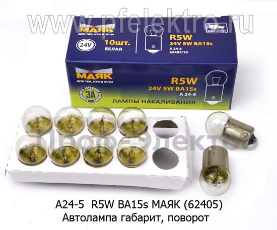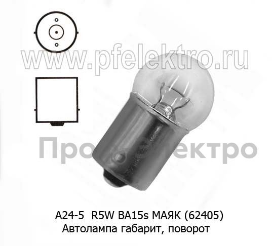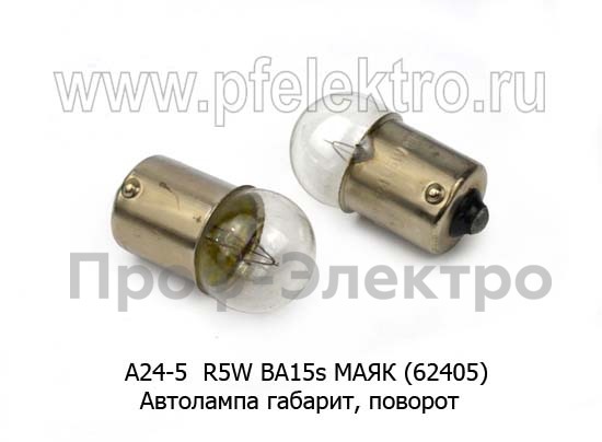 А24-5 BA15s МАЯК (62405) Автолампа R5W BA15s, габарит, поворот, все т/с 24В (МАЯК)