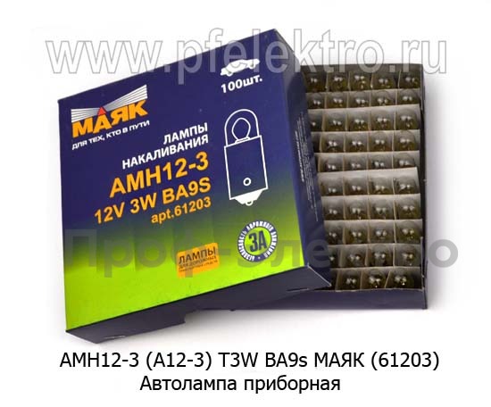 АМН12-3 (А12-3) BA9s МАЯК (61203) Автолампа T3W BA9s приборная, все т/с 12В (МАЯК)