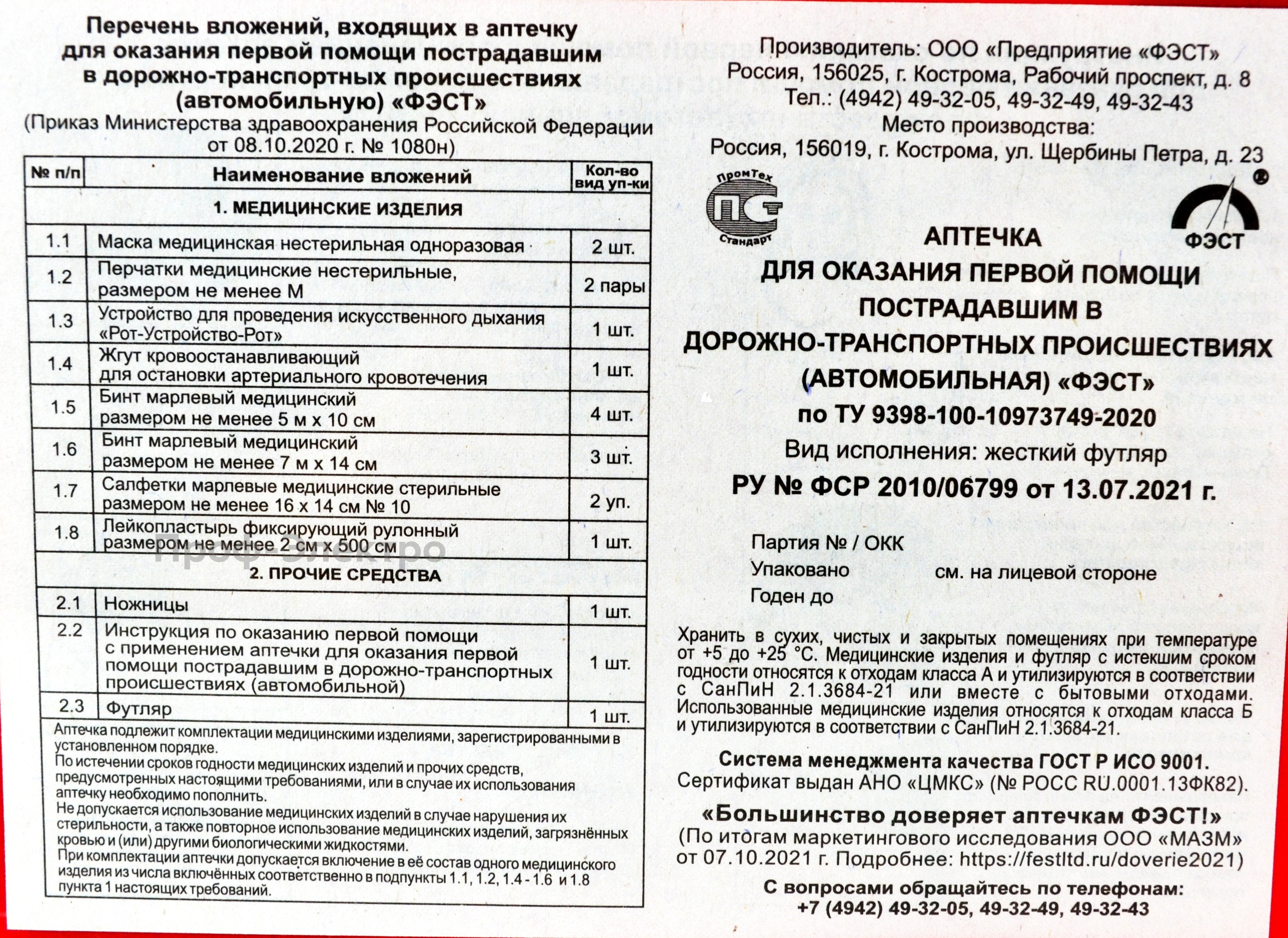 Артикул: Аптечка "ФЭСТ" (новый состав)