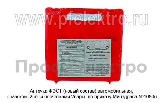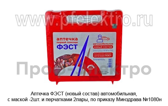 Аптечка "ФЭСТ" (новый состав) Аптечка автомобильная, с маской -2шт. и перчатками 2пары, по приказу Минздрава №1080н (ФЭСТ)