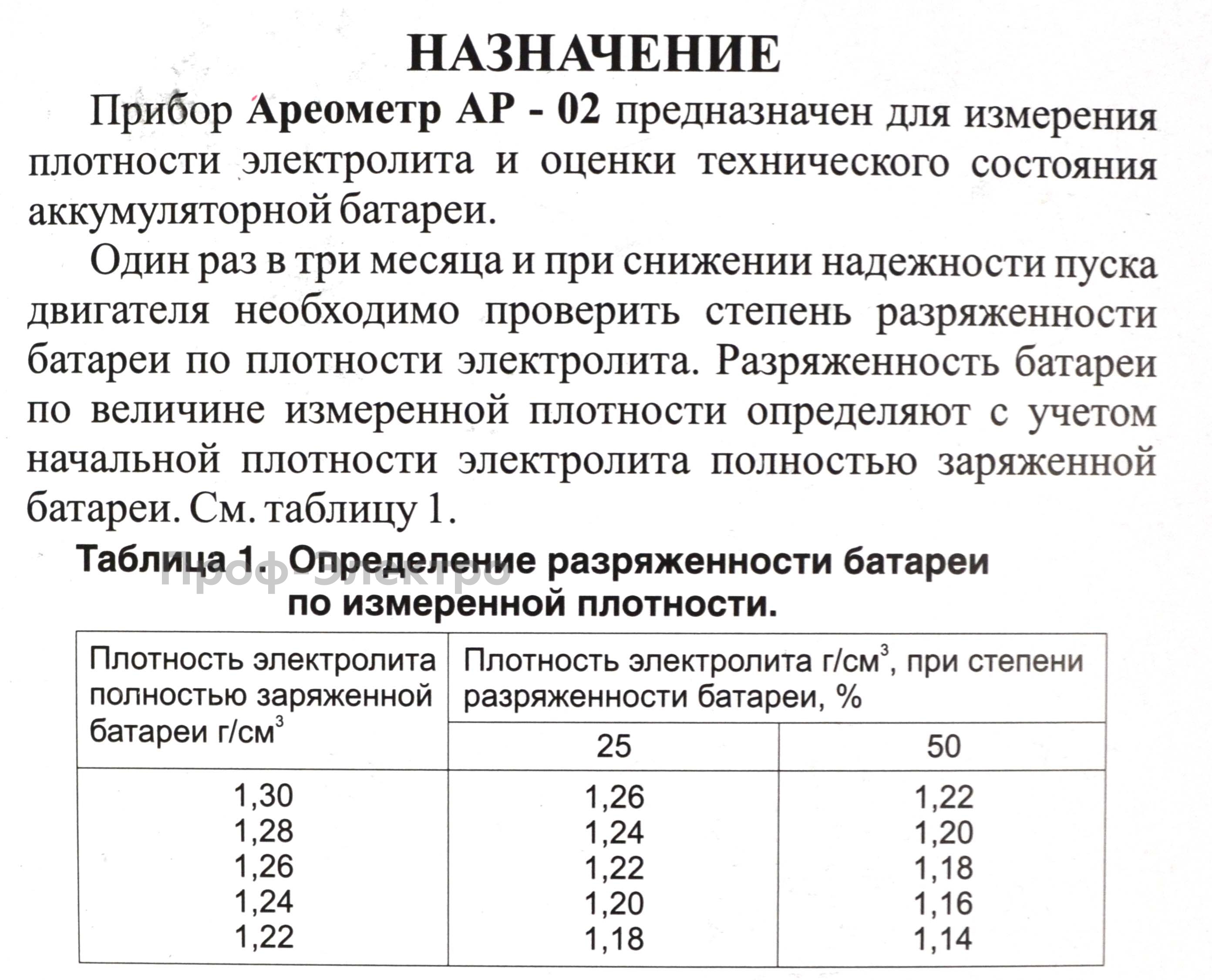 Ареометр АР-02 Ареометр для измерения плотности электролита (МАЯКАВТО)