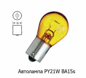 Автолампа PY21W BAU15s, поворот, стоп, смещёный цоколь, все т/с 12В (К)