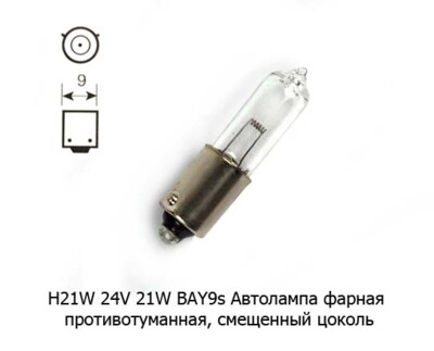 Автолампа галоген H21 противотуманная, 21W BAY9s, смещенный цоколь, все т/с 24В (К)