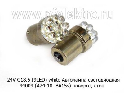 Автолампа светодиодная (А24-5, А24-10 BA15s) поворот, стоп, все т/с 24В (К)