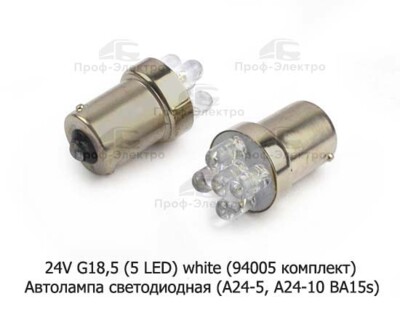 Автолампа светодиодная керамический цоколь (А24-5-2 ст.цок.W2.1x9.5d) габариты, все т/с 24В (К)