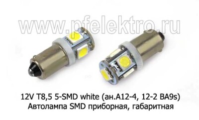 12V Т8,5 5-SMD white (ан.А12-4, 12-2 BA9s)