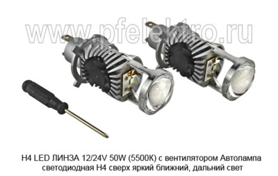 Н4 LED ЛИНЗА 12/24V 50W (5500К) с вентилятором