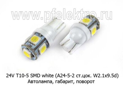 24V Т10-5 SMD white комплект 2шт (ан. А24-5-2 ст.цок. W2.1x9.5d)