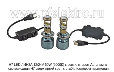 Н7 LED ЛИНЗА 12/24V 50W (6000К) с вентилятором