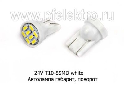 24V Т10-8 SMD white (А24-5-2 ст.цок. W2.1x9.5d)