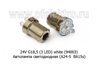 Автолампа светодиодная (А24-5, А24-10 BA15s) поворот, стоп, все т/с 24В (К)