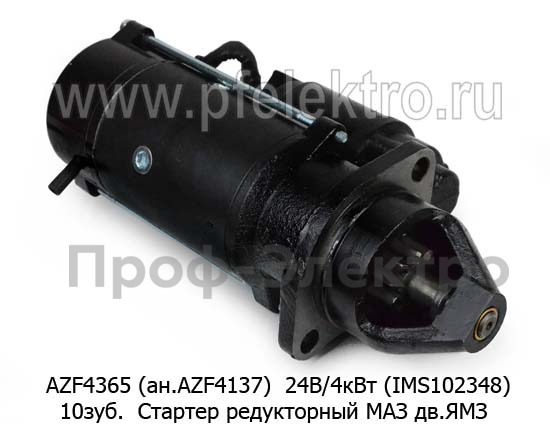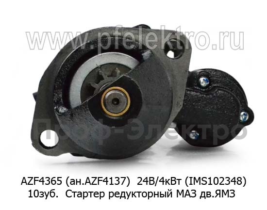 AZF 4137 (IMS102348) 24В/4кВт 10зуб (ан. AZF 4365) Стартер редукторный для маз дв.ЯМЗ 530, 534, 536, кавз дв.538, паз, лиаз, урал (Iskramotor)